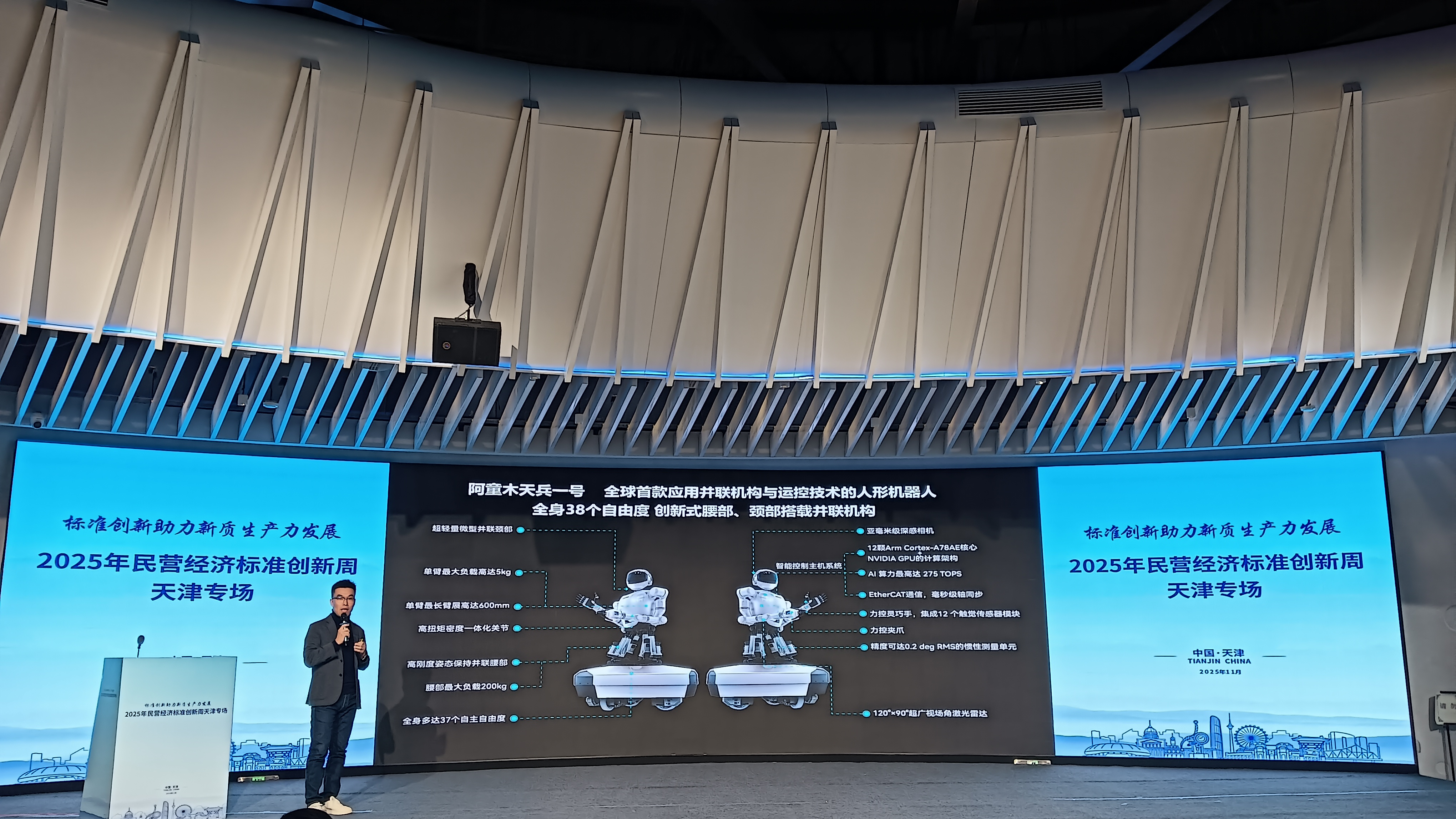 近日,2025平易近营经济尺度周天津专场暨尺度立异助力新质出产力成长集会于津进行,天津阿童木呆板人株式会社受邀参会,现场展示“天兵一号”人形呆板人,并缭绕通器具身呆板人运用作主题分享。 本次勾当由天津市工商联、市市场羁系委结合主理,聚焦平易近营经济尺度立异与新质出产力交融,会聚百余家企业和商会代表。 作为天津本土科技企业代表,阿童木呆板人于现场展示了“天兵一号”的矫捷交互、场景适配等功效,并分享了具身呆板人于工业、办事范畴的尺度化运用摸索,为行业尺度设置装备摆设提供实践案例。 勾当中,市工商联等部分为集体尺度“领先者”颁布证书,同步鞭策平易近营企业介入国际、国度和行业尺度制订——今朝天津平易近企已经主导/介入25项国际尺度、408项国度尺度。阿童木呆板人CMO施凤财暗示,将以这次勾当为契机,连续鞭策人形呆板人范畴的尺度立异,助力新质出产力高质量成长。